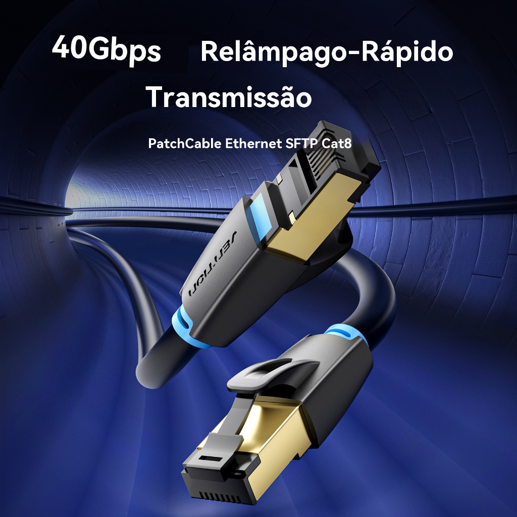 [VENTION]Cabo Ethernet Cat.8 40Gbps Blindagem Dupla - Conector Dourado e PVC Reforçado para Games e Streaming