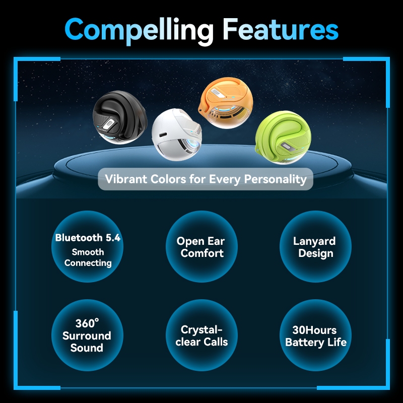 Vention O12 Fones De Ouvido Abertos Bluetooth 5.4 Esfera Design Música De Alta Qualidade Com Cordão Fone Incluído