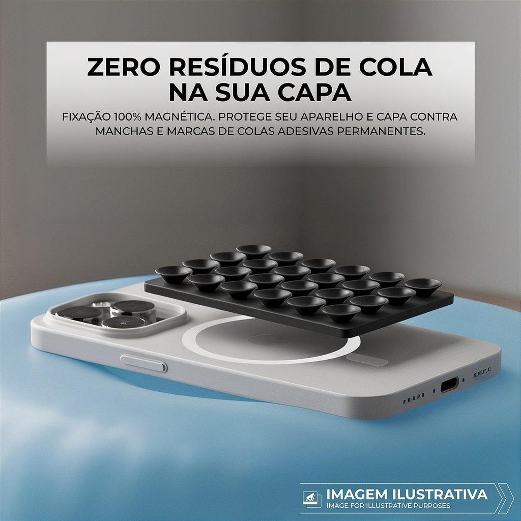 A Ventosa Magnética MagSafe da Gshield foi criada para quem ama praticidade e vive no ritmo acelerado do dia a dia. Com ela, você transforma qualquer superfície lisa - como azulejo, espelho, vidro ou paredes lisas - em um suporte hands-free seguro e instantâneo para o seu smartphone. É a solução perfeita para quem se arruma assistindo vídeos, segue receitas enquanto cozinha, treina vendo tutoriais ou simplesmente quer manter o celular visível sem ocupar as mãos. Projetada com ímãs calibrados e potentes, ela fixa com precisão em smartphones compatíveis e capas MagSafe, suportando o peso do aparelho com estabilidade total. Basta aproximar o celular e pronto: a fixação acontece em 1 segundo, sem cola, sem sujeira, sem riscos. A superfície com 27 ventosas de silicone soft-touch premium garante aderência forte na parede e toque macio no celular, evitando arranhões e marcas. Além disso, seu design é totalmente removível, permitindo guardar o smartphone no bolso sem volume extra. Ideal para cozinha, banheiro, academia, escritório e qualquer ambiente onde você precise unir praticidade, mobilidade e segurança. Com a Ventosa Magnética MagSafe da Gshield, o seu celular fica sempre no melhor ângulo. ESPECIFICAÇÕES Marca: GShield Material: Silicone soft-touch premium + base magnética MagSafe Cor: Preto Medidas aproximadas: – Comprimento: 10 cm – Largura: 6,5 cm – Espessura: 0,6 cm Peso: 35g Tecnologia de ímãs: Ímãs integrados com alinhamento MagSafe COMPATIBILIDADE Qualquer dispositivo que possua conexão Magsafe ITENS INCLUSOS 1x Ventosa Magnética MagSafe GARANTIA 3 meses contra defeitos de fabricação + Garantia Vitalícia Co-Participativa Com decorrer do uso a capa pode apresentar arranhões pelo contato diário com superficies SEGURO Aconselhamos para uma proteção completa a compra dos planos de coberturas contra roubo, furto e danos da Gshield, conheça nossos planos