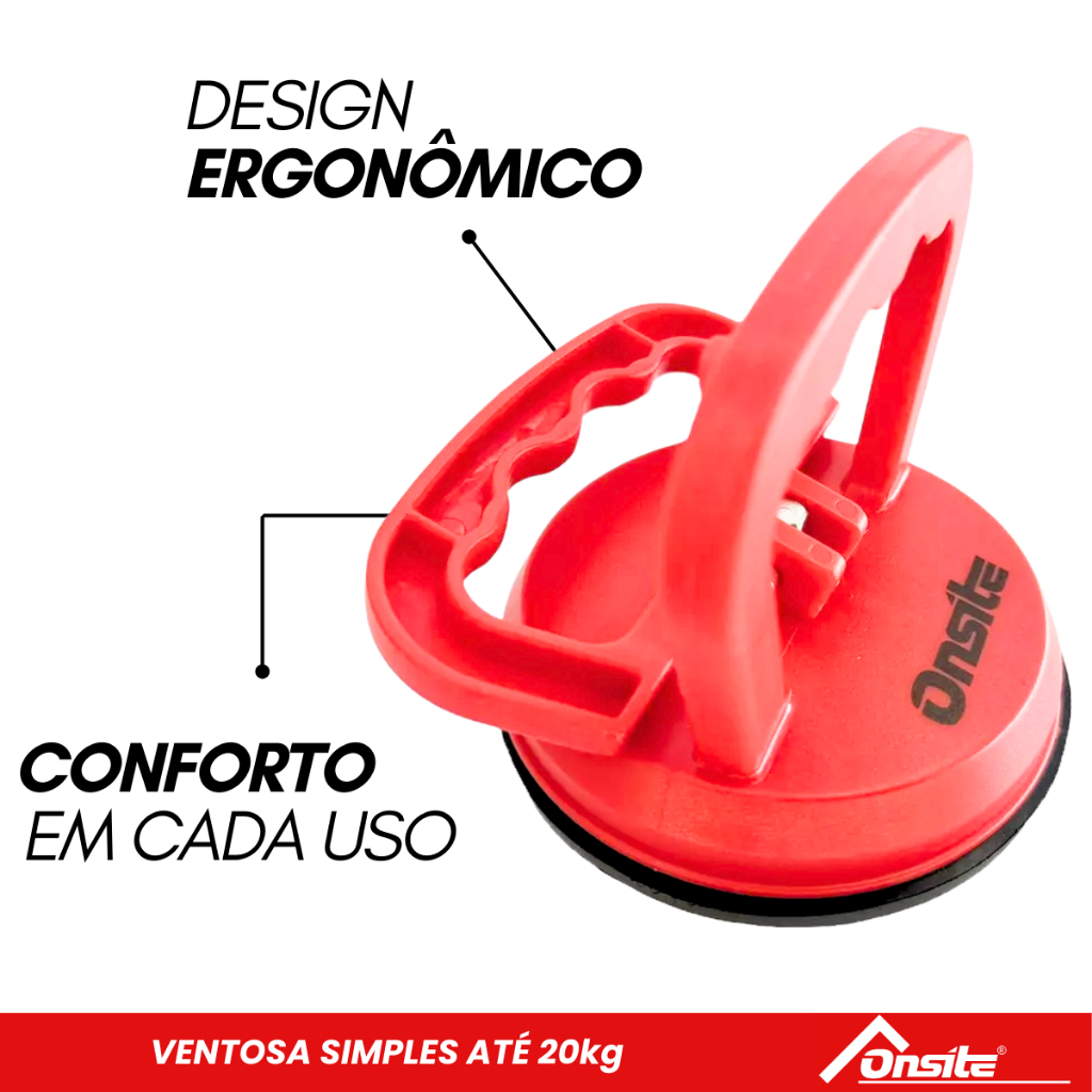 A Ventosa Simples Com Capacidade de Até 30kg (715701) - Onsite, é utilizada principalmente para facilitar o manuseio e a movimentação de materiais com superfícies lisas e planas, como vidros, chapas de metal ou cerâmicas. Ela funciona criando uma pressão negativa (vácuo) entre a ventosa e o material, permitindo que o operário segure e transporte objetos pesados com mais facilidade e segurança, sem a necessidade de perfurar ou danificar a superfície do material. Algumas das principais funções da ventosa simples em obras incluem: • Instalação de vidros: Ajuda na colocação de janelas e portas de vidro, oferecendo mais controle e segurança. • Movimentação de peças lisas e grandes: Como mármore, cerâmica ou peças metálicas que precisam ser ajustadas no local. • Manutenção de painéis solares: Ajuda no transporte e posicionamento dos painéis em telhados ou estruturas. • Segurança no manuseio: Reduz o risco de quedas ou danos, já que proporciona uma melhor aderência. É uma ferramenta simples, mas bastante eficiente para esses tipos de tarefas em ambientes de construção e automobilístico. Código: 715701. Marca: Onsite. Capacidade: 30kg. Ean: 1008500988186.