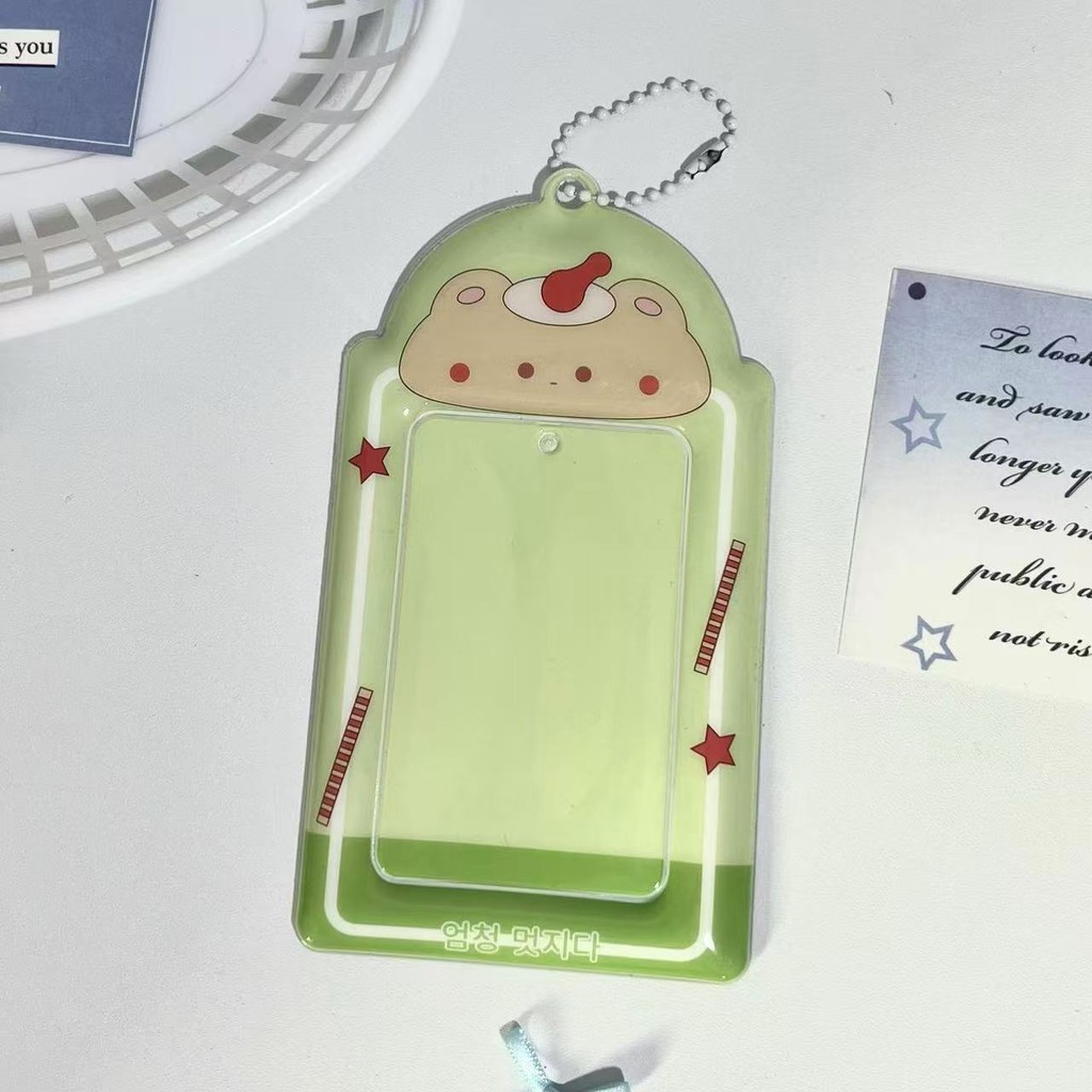 Verde Dos Desenhos Animados PVC Titular Do Cartão Pequeno De Refeição Arco Armazenamento Display Pingente 3 Polegada
