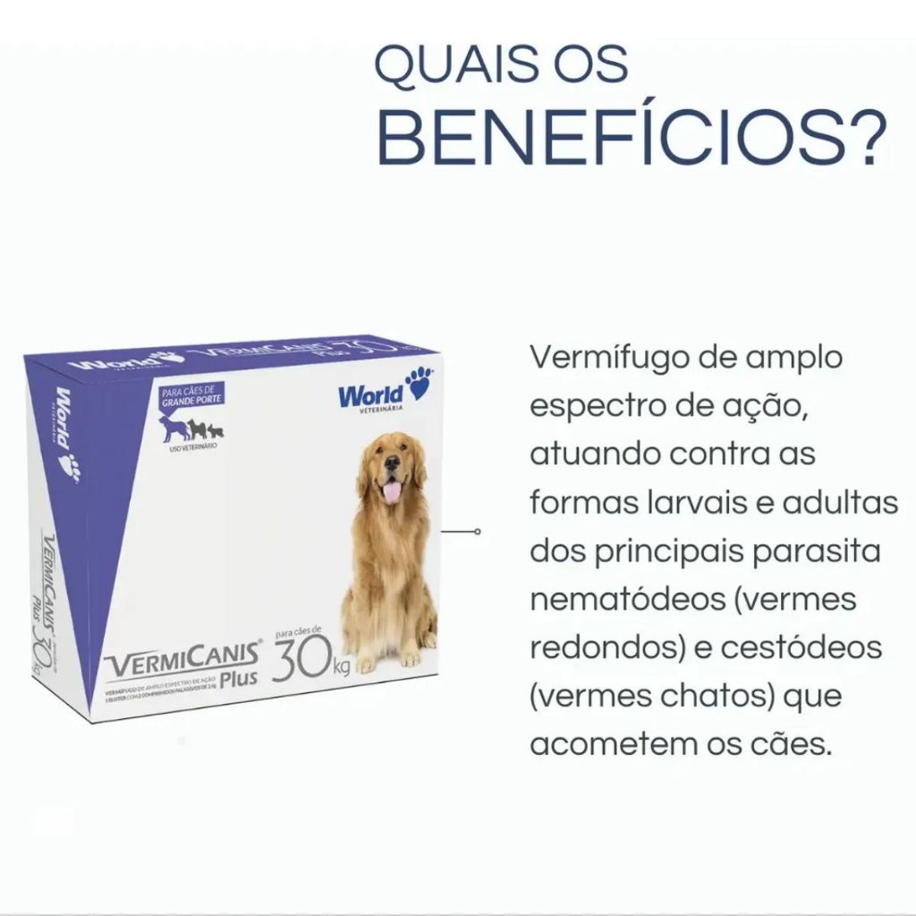 | Vermífugo Cães Grande Porte 30kg Vermicanis 2 Comprimidos este produto | R$ 11,09 | 57% | 4.9/5 | — |