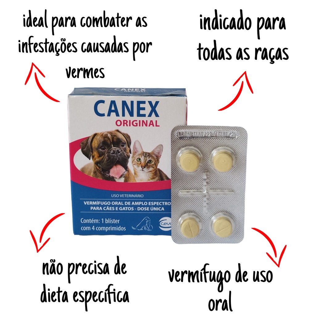 Vermífugo Canex Original Gato Cachorro Kit C/ 16 - 4 Cx Comprimidos Anti Vermes Dose Unica