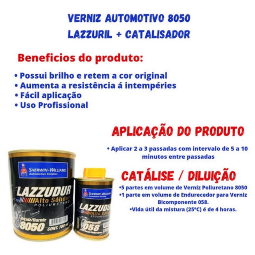 VERNIZ AUTOMOTIVO 8050 + CATALISADOR END 058 0,9L LAZZURIL