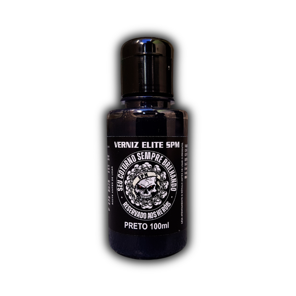 VERNIZ ELITE SPM Modo de usar: Limpe bem o coturno, bota, sapato e aplique uma camada fina do Verniz Elite SPM com esponja aplicadora, deixe secar e depois é só lustrar com a flanela. O KIT INCLUI:👇👇👇 👉 Verniz Elite SPM ( preto 100 ml) para um brilho impecável e duradouro; 👉 Esponja para aplicação prática e fácil de usar; 👉 Flanela para lustrar que garante um acabamento perfeito. CARACTERÍSTICAS - Alto brilho; - Realça a cor original; - Fácil aplicação; - Secagem rápida; - A base de água e cera de carnaúba Indicação: O Verniz Elite SPM é feito a base de água e cera de carnaúba, ideal para dar brilho instantaneamente em artigos de couro, soletas, artesanato em couro, calçados, coturnos, botas, braçal e artigos militares. OBS: Não é recomendado o seu uso em artigos de couro do tipo camurça, nobuck, couros naturais, couros encerados e graxos.