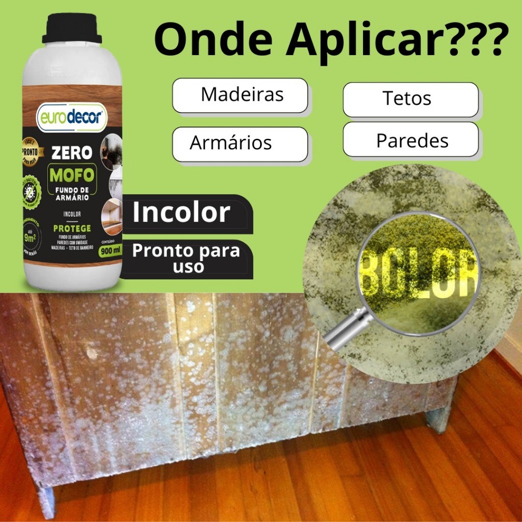 EURODECOR MOFO ZERO FUNDO DE ARMÁRIO é um verniz de alta performance, para proteção de madeira contra fungos, bolor e bactérias. Confere uma película transparente de acabamento acetinada com alta performance e durabilidade. Principais Características • Pronto para uso • Facil aplicação • Fornece praticidade na limpeza da superfície Onde aplicar • Madeiras em geral, concreto, pedras, resinados: pinturas e texturas internas e externas • Fundo de armários, móveis, forros e decks • Tetos de banheiros, paredes com umidade Para outras superfícies ou em caso de dúvidas, entre em contato com nosso Serviço de Atendimento ao Cliente (SAC) para recomendações específicas e orientações detalhadas. Preparo do local • A superfície deve estar limpa, seca, livre de poeira ou qualquer substância que possa atrapalhar a adesão. A madeira deve estar coesa e íntegra, partes frágeis devem ser removidas, furos e imperfeições tratadas previamente • Em caso de superfícies com tratamento prévio: cera, resina, entre outros acabamentos; é necessário lixar o local para promover ancoragem • Locais com contaminações: fungos, bolor, traças entre outras, devem ser limpos primeiramente. Se necessário lixar o local, não pode conter resíduos. Preparo do Produto EURODECOR MOFO ZERO FUNDO DE ARMÁRIO é pronto para uso, necessário apenas misturar e aplicar Atenção: Misturar bem antes da aplicação, melhorando a dispersão dos componentes e o efeito final. Aplicação • Utilizar rolo de veludo ou lã, pincel com cerdas macias, trinchas ou pulverizador de baixa pressão • Aplicar pelo menos 2 demãos com intervalo de 2 a 4 horas entre as demãos • Em superfície de aglomerados ou com alta absorção é recomendado aplicar 3 demãos Após Aplicar Para manter a integridade da pintura após a aplicação do nosso produto, siga estas recomendações: Limpeza: Aguarde pelo menos 72 horas antes de lavar as superfícies aplicadas. Manchas: Evite limpar áreas recém-pintadas com solventes ou diluentes. Em caso de manchas, recomenda-se uma demão extra para cobrir a mancha detectada. Cuidados Especiais: Proteja a superfície de respingos de substâncias que possam causar manchas permanentes. Se ocorrer contato, limpe imediatamente com água em abundância. Não possui resistência química Atenção: A chuva sobre a superfície em processo de cura pode impactar diretamente no resultado final. Esteja preparado para cobrir a área aplicada nestes caso, evitando assim que o trabalho realizado seja perdido de forma parcial ou integral. Liberação • Secagem ao toque: 6 horas • Liberação: 24 horas • Cura: 7 dias – Somente após esse período é recomendado executar algum tipo de limpeza, que deve ser apenas água e detergente neutro, não usar agentes abrasivos Dosagem/Rendimento Consumo 100 a 150ml/ m² Aspecto Líquido Leitoso Demãos necessárias 2 a 3 Rendimento (3,6 L) 24 a 36 m² Rendimento (900ml) 6 a 9 m² Secagem entre demãos 2 a 4 horas Acabamento Acetinado Segurança e Meio Ambiente Embalagens: Evite deformações armazenando as embalagens em locais adequados, sem empilhamento excessivo. Vazamentos: Em caso de derramamento, contenha o material imediatamente com absorventes apropriados, como serragem ou vermiculita. Incêndios: Tenha sempre à disposição um extintor de incêndio adequado para emergências.