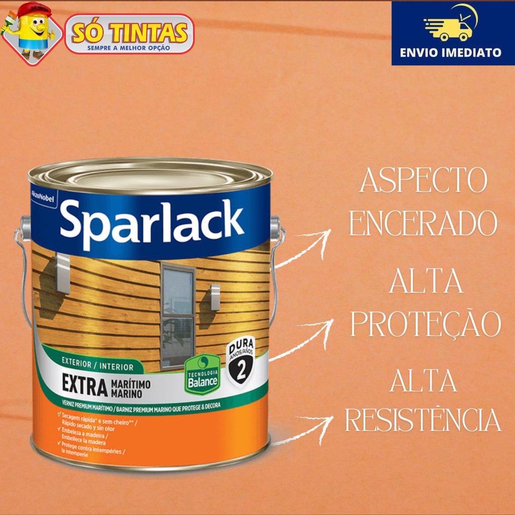 Imagine um espaço onde a beleza da madeira é realçada e protegida, resistente às intempéries e à ação do tempo. O Verniz Sparlack Extra Marítimo proporciona um acabamento Brilhante que não apenas embeleza, mas também prolonga a vida útil da sua madeira, trazendo elegância e proteção para ambientes internos e externos. Com o Verniz Sparlack Extra Marítimo, você tem à disposição um produto premium, fácil de aplicar e com resultados impressionantes. Benefícios: •Proteção Superior: Resiste às condições climáticas mais adversas, incluindo sol intenso e maresia. •Durabilidade de 2 anos: Mantenha suas superfícies lindas e protegidas por muito mais tempo. •Acabamento Brilhante: Realça a beleza natural da madeira, dando um toque de sofisticação ao seu ambiente. •Fácil Aplicação: Secagem rápida tornando o processo muito mais prático. •Não Altera a Cor: Preserva a tonalidade original da madeira, destacando sua beleza. •Filtro Solar: Protege contra os raios ultravioletas, evitando o desgaste da cor. Dados Técnicos Identificação do Produto: •Nome: Verniz Sparlack Extra Marítimo Brilhante •Marca: Sparlack •Tipo: Verniz Características Físicas: •Cor: Natural •Acabamento: Brilhante •Embalagem: 3,6 Rendimento: •Cobertura: Até 17m² por galão acabado. Diluição: •Com Pincel/Trincha/Rolo: Até 10% •Com Pistola: Até 30% Tempo de Secagem: •Toque: 2 horas •Manuseio: 8 horas •Entre Demãos: 8 a 12 horas •Secagem Final: 24 horas Propriedades: •Durabilidade: 2 anos •Validade do Produto: 36 meses •Resistência: Intempéries e maresia •Filtro Solar: Sim •Alteração de Cor: Não altera a cor natural da madeira Composição: •Resinas alquídicas modificadas com poliuretano •Pigmentos transparentes absorvedores de raios ultravioletas •Solventes hidrocarbonetos alifáticos e aromáticos •Aditivos Aplicação Passo a Passo: 1.Preparação da Superfície: oCertifique-se de que a superfície de madeira esteja limpa, seca e livre de poeira ou gordura. Se necessário, lixe a madeira suavemente com lixa fina para garantir uma melhor aderência. 2.Diluição do Verniz: oSe for aplicar com pincel ou trincha, dilua o verniz em até 10% com solvente adequado. Para aplicação com pistola, dilua em até 30%. Misture bem antes de aplicar. 3.Aplicação da Primeira Demão: oCom um pincel ou trincha, aplique a primeira demão de verniz de maneira uniforme, seguindo a direção das fibras da madeira. Para melhor acabamento, evite excessos. 4.Secagem: oAguarde o tempo de secagem ao toque, que é de cerca de 2 horas. Após isso, verifique se a superfície está seca ao toque antes de aplicar a segunda demão. 5.Aplicação da Segunda Demão: oApós o intervalo de secagem (8-12 horas), aplique a segunda demão da mesma forma que a primeira. Isso ajudará a garantir uma proteção e acabamento mais uniformes. 6.Aplicação da Terceira Demão (para Exteriores): oSe a aplicação for em ambientes externos, repita o processo com uma terceira demão, respeitando novamente o intervalo de secagem. 7.Finalização: oApós a última demão, aguarde 24 horas para que o verniz atinja a secagem completa antes de manusear ou expor a peça à umidade. Principais perguntas: Acompanha nota fiscal? Sim, todos os nossos produtos são enviados com nota fiscal. O envio é por Correios? Pode ser enviado por Correios ou por transportadora privada, isso vai depender da disponibilidade das transportadoras que atendem o seu endereço. Porque não posso comprar mais de 4 unidades no mesmo pedido? Infelizmente há uma limitação por parte das transportadoras. Elas enviam apenas 4 unidades em cada pedido devido às dimensões e peso do pacote. Para mais unidades, você vai precisar fazer mais de um pedido, respeitando o limite máximo de 4 por pedido. Só Tintas, sempre a melhor opção. Somos a maior rede de lojas de tintas no estado do Rio de Janeiro. Desde 1977, a Só Tintas atua no Rio de Janeiro oferecendo os melhores produtos e soluções em pintura imobiliária, automotiva e industrial. Somos uma empresa familiar que começou em Teresópolis e hoje temos mais de 30 lojas físicas. Trabalhamos de forma ética e transparente, com o principal objetivo de proporcionar aos nossos clientes um atendimento de excelência, provendo as melhores soluções. Nossa missão é levar cor para a vida das pessoas. Por isso a Só Tintas é Sempre a Melhor Opção