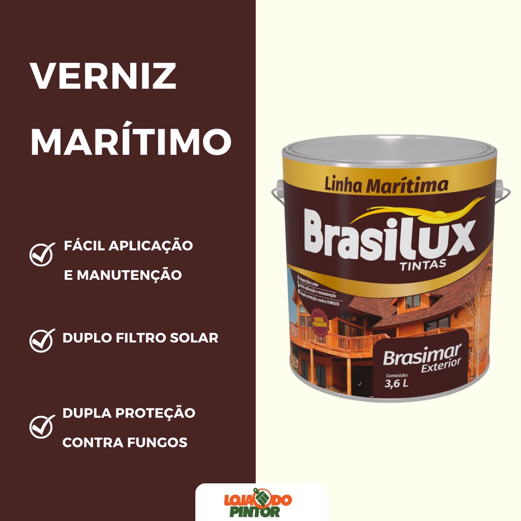 | Verniz Para Madeira Marítimo 3,6l Brasilux Cores este produto | R$ 144,31 | 5% | 5.0/5 | — |