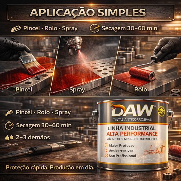 Proteja, preserve e valorize suas peças metálicas com o Verniz Protetivo para Metal MEPCO 900L. Desenvolvido para uso industrial e profissional, ele cria uma película brilhante, resistente e translúcida que protege contra oxidação, umidade e desgaste durante armazenamento e processos produtivos. Com excelente rendimento (até 11m²) e aplicação simples, forma uma camada protetiva uniforme que permite visualizar o metal por baixo, garantindo controle total da cobertura e inspeção visual da peça. Antes de comprar, leia atentamente todas as informações técnicas — cada detalhe garante máxima performance e aplicação correta. Destaques do Produto • Proteção Anticorrosiva Real: Cria uma barreira contra umidade e agentes oxidantes, preservando ferro e aço. • Película Brilhante e Translúcida: Vermelho transparente que permite visualizar a superfície metálica protegida. • Controle de Aplicação: A coloração facilita a identificação da área protegida sem mascarar o metal. • Alto Rendimento: Até 11m² por demão (variável conforme superfície). • Resistência Técnica: Ideal para peças usinadas, estruturas metálicas e armazenamento industrial. Ficha Técnica • Produto: Verniz Protetivo Para Metal MEPCO • Volume: 900ml • Aspecto da Película: Brilhante • Cor: Vermelho Translúcido • Densidade: 0,98 – 1,02 g/cm³ • Rendimento Teórico: Até 11m² • Diluição: Se necessário, até 20% • Solvente Recomendado: Solvente de Acabamento ou Solvente Comum • Secagem ao Toque: 4 horas • Intervalo Entre Demãos: 6 horas • Secagem Final: 48 horas Instruções de Uso • Preparo da Superfície: Limpe completamente a peça, removendo óleos, graxa, poeira e oxidação solta. • Aplicação: Pode ser aplicado com pincel, rolo ou spray, em camadas finas e uniformes. • Demãos: Recomenda-se 2 a 3 demãos, respeitando o intervalo de 6 horas. • Diluição: Se necessário, diluir até 20% com solvente recomendado. • Limpeza de Ferramentas: Utilizar solvente comum imediatamente após o uso. Bloco de Confiança MEPCO • Mais de 20 anos de mercado: Especialistas em tintas industriais. • Padrão ABNT/Inmetro: Produção seguindo normas técnicas rigorosas. • Nota Fiscal e Garantia: Compra acompanhada de NF e garantia de fábrica. • Atendimento Profissional: Segunda a sexta, das 08h às 16h (horário padronizado). Dúvidas Rápidas • Limite de compra: 8 unidades por nota fiscal (regra logística). • Pode aplicar sobre ferrugem ativa? Não. Remova a oxidação solta antes da aplicação. • Precisa de fundo? Para máxima proteção estrutural, recomenda-se primer anticorrosivo adequado em metais já comprometidos. • Pode usar em madeira? Produto desenvolvido para superfícies metálicas. Compre Agora Garanta o Verniz Protetivo Para Metal MEPCO 3,6L e proteja suas peças com uma película técnica, resistente e profissional. Protege hoje. Evita prejuízo amanhã.