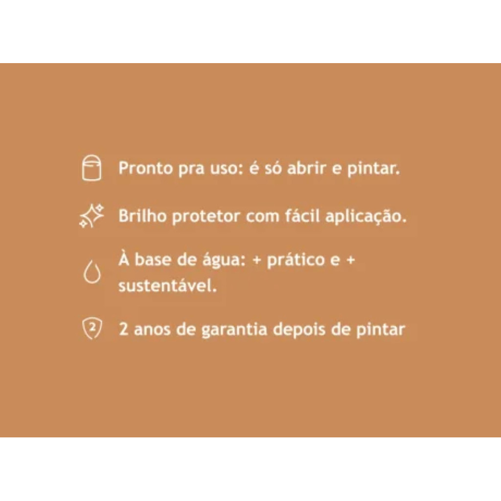 VERNIZ BRILHANTE COPAL TRANSPARENTE 900ML SUVINIL VERNIZ BRILHANTE À BASE DE ÁGUA: Os vernizes são essenciais para realçar a cor e a beleza da madeira, além de conservá-la. Por isso, contar com um verniz brilhante à base de água é essencial para deixar sua casa ainda mais bonita. O Suvinil Proteção Básica oferece diversos benefícios para a pintura do seu lar. Nosso verniz incolor garante um brilho protetor a diversos pontos de madeira na sua casa, sendo a melhor opção para todos os cômodos. Confira mais detalhes sobre esse produto incrível a seguir! SAIBA MAIS SOBRE O VERNIZ SUVINIL PROTEÇÃO BÁSICA: Com acabamento brilhante, o verniz para madeira da Suvinil é um produto pronto para o uso. Isso significa que você só precisa abrir, misturar e aplicar na superfície desejada. Além disso, com o Verniz Suvinil Proteção Básica, você tem dois anos de garantia após a sua pintura. O Verniz Suvinil Proteção Básica é muito prático, já que facilita a limpeza dos acessórios de pintura, que pode ser feita com água mesmo. Em paralelo a isso, esse verniz brilhante à base de água é uma alternativa sustentável, porque produtos com essa composição emitem menos poluentes no descarte que outros à base de solventes. Além disso, o verniz brilhante à base de água é uma opção não inflamável, unindo sustentabilidade e qualidade. A seguir, confira mais algumas características superbacanas sobre o Suvinil Proteção Básica. ALTO RENDIMENTO: O verniz incolor brilhante da Suvinil está disponível na embalagem: galão 3,6L. Essa quantidade consegue cobrir superfícies de madeira de até 90m². Por isso, é um produto de alto rendimento, perfeito para renovar sua casa. SECAGEM RÁPIDA: Imagine contar com um verniz brilhante à base de água que ainda tem secagem rápida? O Suvinil Proteção Básica oferece essa característica que traz mais praticidade na hora de renovar a sua casa. Ele fica seco para o toque em apenas trinta minutos. ONDE APLICAR O SUVINIL PROTEÇÃO BÁSICA? Nosso verniz à base de água é perfeito para superfícies de madeira, realçando a beleza e dando um brilho incrível para deixar os ambientes parecendo novos. Aliás, a aplicação de vernizes pode ser feita em vários pontos da casa, como portas, janelas, cercas, portões, móveis e decks. Outra vantagem de aplicar o verniz brilhante à base de água da Suvinil é ter uma proteção extra contra os efeitos das mudanças climáticas, como a exposição ao sol e à chuva. O Suvinil Proteção Básica é indicado tanto para madeira nova quanto para repintura de superfícies amadeiradas. *TERMO DE GARANTIA:O Suvinil Verniz PROTEÇÃO BÁSICA foi feito para dar proteção e durabilidade para as suas madeiras. Aplicando o Suvinil Verniz PROTEÇÃO BÁSICA de acordo com todas as instruções da embalagem, a Suvinil garante que seu brilho vai durar até 2 anos, desde que rigorosamente observadas todas as instruções de preparação e aplicação constantes da embalagem. Dependendo da madeira, seu verniz pode perder um pouco do brilho, o que não prejudica sua performance e garantia. Quando for usar a garantia Suvinil, não esqueça: você precisa ter seguido todas as instruções de uso e aplicação do produto além de ter a nota fiscal de compra em mãos. Nossa garantia não se aplica nos casos de culpa exclusiva do consumidor ou de terceiro e também não assegura sua proteção quando a rachadura do verniz acontecer porque a superfície contraiu ou dilatou ou ainda a aplicação de vernizes de outros fabricantes, uma vez que sua composição e desempenho sobre Suvinil Verniz PROTEÇÃO BÁSICA são desconhecidos pela Suvinil. DETALHES TÉCNICOS! ACABAMENTO: •Brilhante SECAGEM: •Ao toque: 30 min •Entre demãos: 2 horas •Final: 3 horas RENDIMENTO ACABADO: •900ML: Rendimento até 20m² QUANTIDADE NECESSÁRIA DE DEMÃOS: •2 a 3 DILUIÇÃO: •Diluir com 10% de água potável se necessário. VERNIZ BRILHANTE BASE ÁGUA TRANSPARENTE MADEIRA 900ML SUVINIL
