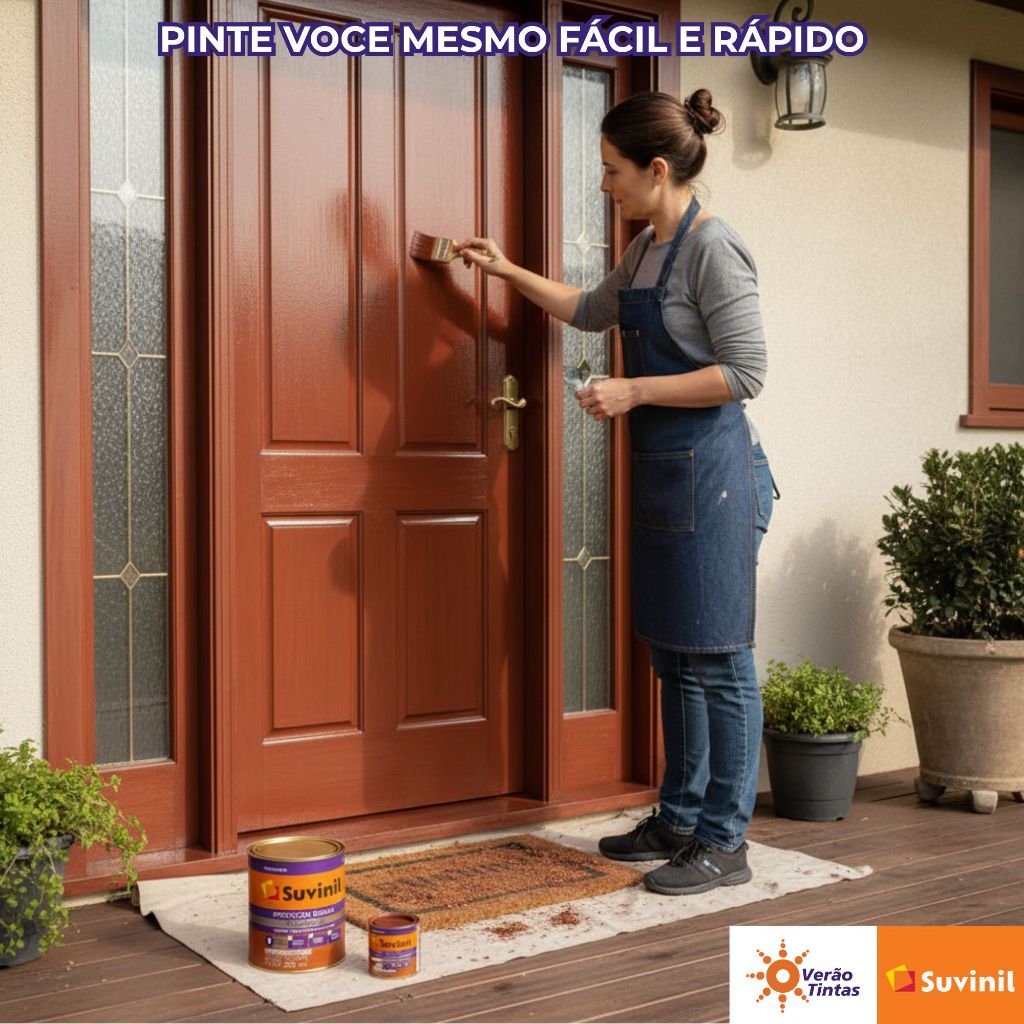 SAIBA MAIS SOBRE O VERNIZ SUVINIL PROTEÇÃO DUPLA TINGIDOR O verniz para madeira da Suvinil é perfeito para quem quer proteger as superfícies dos efeitos do sol e da chuva. Seguindo todos os passos indicados para a correta aplicação, esse produto garante que o local fique protegido por três anos Nosso verniz imbuia brilhante é indicado para superfícies internas e externas. Além disso, pode ser usado para primeira pintura ou repintura da madeira. Confira mais detalhes sobre os benefícios de escolher o Verniz Suvinil Proteção Dupla Tingidor! RENOVA A MADEIRA Esse produto da Suvinil é perfeito para quem quer renovar a aparência e recuperar superfícies de madeira que sofreram com a passagem do tempo. Isso porque a cor de verniz imbuia tinge a área desejada sem tirar o aspecto natural desse material. ALTO RENDIMENTO Nosso verniz tingidor imbuia precisa de 2 a 3 demãos para o resultado e está disponível em 2 tamanhos diferentes: 0,9 L e 3,6 L. Com eles, é possível fazer a cobertura total de superfícies entre 4,2 m² e 17 m². Se estiver em dúvida sobre o ideal, acesse nossa calculadora de tinta. Basta adicionar as medidas que calculamos para você. SECAGEM RÁPIDA Procurando um verniz brilhante e com secagem rápida? O Verniz Suvinil Proteção Dupla Tingidor é ideal para você. Para o toque, precisa esperar de 4 a 6 horas. Entre demãos, 12. Para o resultado de qualidade, 24 horas. COMO APLICAR O VERNIZ SUVINIL PROTEÇÃO DUPLA TINGIDOR? Para aplicar o nosso verniz brilhante, você precisa diluir o produto em aguarrás. A quantidade depende do acessório utilizado para a pintura, mas fica entre 10% e 20% de solvente por litro. Antes de adicionar esse item, abra a lata e mexa bem o verniz. Depois, coloque o solvente e misture mais uma vez. Em seguida, é hora de aplicar o verniz imbuia brilhante. Isso pode ser feito usando rolo de espuma, pincel ou pistola. No último caso, é fundamental aplicar uma pressão entre 2,2 e 2,8 kgf/cm² ou 30 e 35 lbs/pol². Confira se, durante a aplicação, o verniz desliza sobre a madeira sem repuxar. Caso faça isso, adicione um pouco mais de solvente. Lembre-se de sempre misturar apenas o que for utilizar na pintura para evitar desperdícios. IMAGENS MERAMENTE ILUSTRATIVAS A FIM DE DEMONSTRAR AS CORES DISPONÍVEIS PARA O PRODUTO.