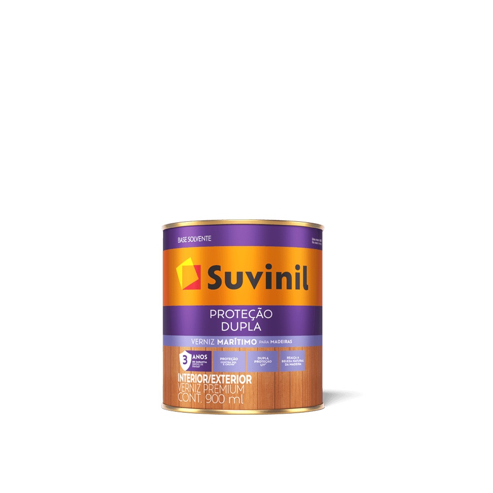 Verniz Mogno brilhante A madeira é um dos materiais mais bonitos para a decoração da casa. Ela pode ser colocada em móveis, objetos ou até na própria estrutura. Por isso, garantir a preservação dela é essencial. Com o verniz mogno brilhante da Suvinil, isso é possível. Nosso verniz mogno realça os veios naturais da madeira e ainda cria uma camada de proteção. Confira mais informações sobre o Verniz Suvinil Proteção Dupla Tingidor a seguir. Saiba mais sobre o Verniz Suvinil Proteção Dupla Tingidor O verniz para madeira da Suvinil é perfeito para quem quer proteger as superfícies dos efeitos do sol e da chuva. Seguindo todos os passos indicados para a correta aplicação, esse produto garante que o local fique protegido por três anos Nosso verniz imbuia brilhante é indicado para superfícies internas e externas. Além disso, pode ser usado para primeira pintura ou repintura da madeira. Confira mais detalhes sobre os benefícios de escolher o Verniz Suvinil Proteção Dupla Tingidor! Renova a madeira Esse produto da Suvinil é perfeito para quem quer renovar a aparência e recuperar superfícies de madeira que sofreram com a passagem do tempo. Isso porque a cor de verniz mogno tinge a área desejada sem tirar o aspecto natural desse material. Alto rendimento Nosso verniz tingidor mogno precisa de 2 a 3 demãos para o resultado e está disponível em 2 tamanhos diferentes: 0,9 L e 3,6 L. Com eles, é possível fazer a cobertura total de superfícies entre 4,2 m² e 17 m². Se estiver em dúvida sobre o ideal, acesse nossa calculadora de tinta. Basta adicionar as medidas que calculamos para você. Secagem rápida Procurando um verniz brilhante e com secagem rápida? O Verniz Suvinil Proteção Dupla Tingidor é ideal para você. Para o toque, precisa esperar de 4 a 6 horas. Entre demãos, 12. Para o resultado de qualidade, 24 horas.