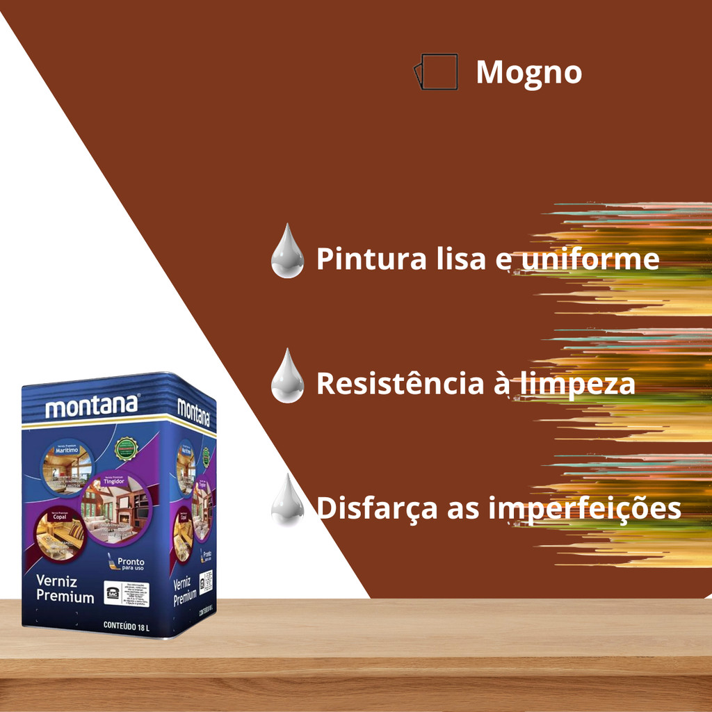 | Verniz Tingidor Mogno Brilho 18L Montana este produto | R$ 469,90 | 9% | 5.0/5 | — |