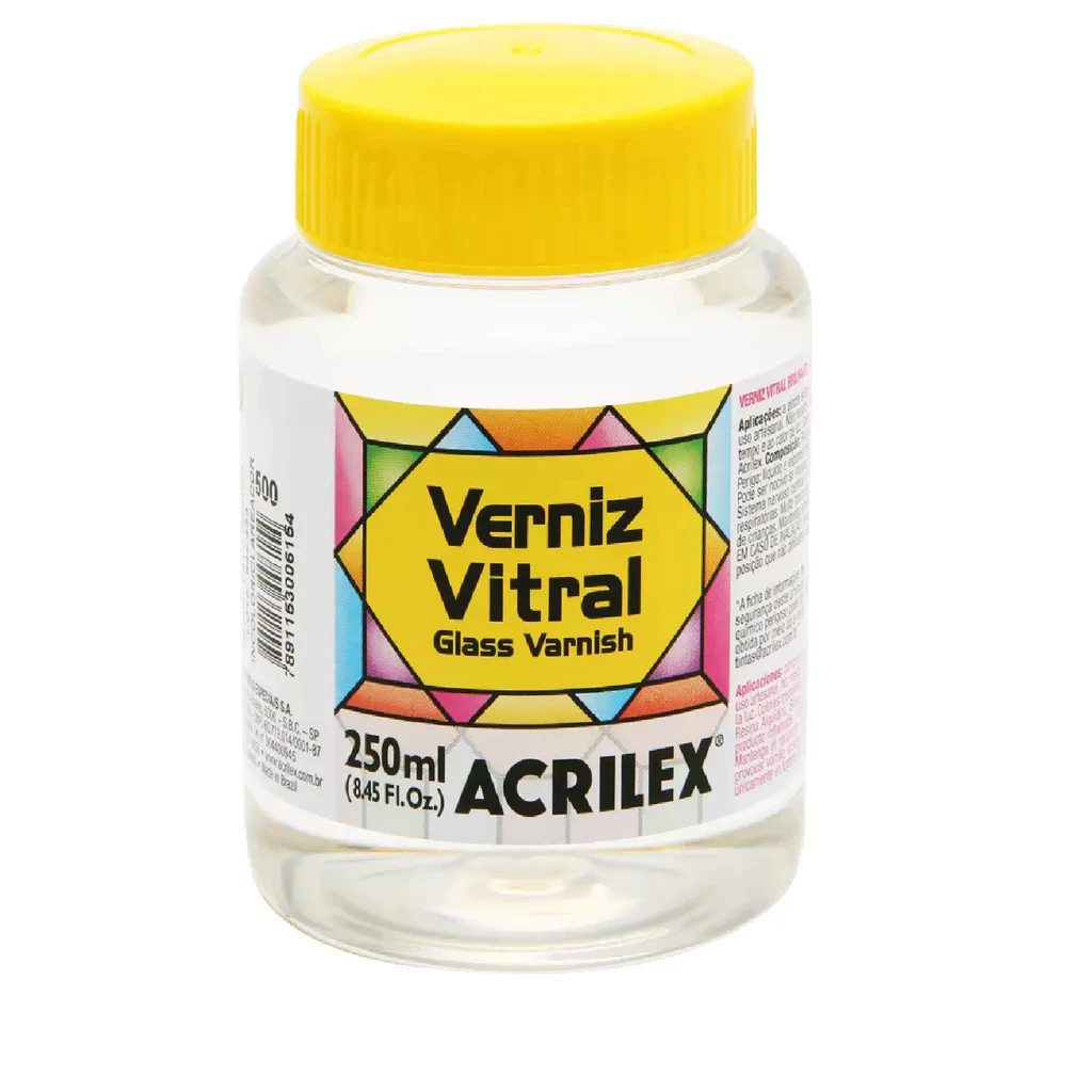 Verniz Vitral Incolor Acrilex 37ml, 100ml ou 250ml Transparente Brilhante Original