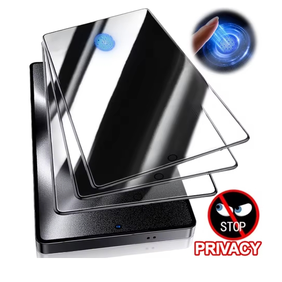 Versão de desbloqueio por impressão digital pelicula vidro de privacidade para s24/s24 plus/s25/s25 plus/s25 ultra
