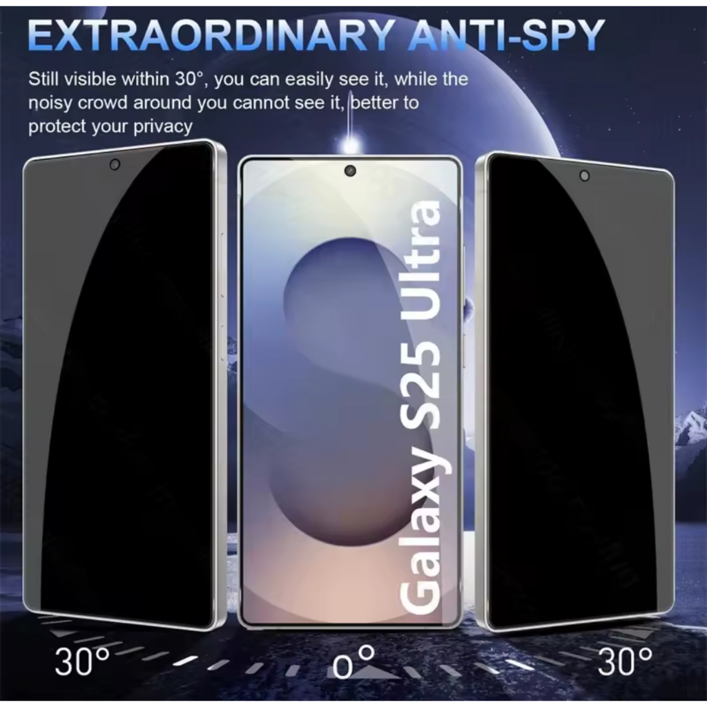 Versão de desbloqueio de impressão digital de pelicula de vidro de privacidade compatível/s24/s24plus/s25/s25 plus/s25 ultra modelo(sem furo) Após a instalação, registre novamente sua impressão digital