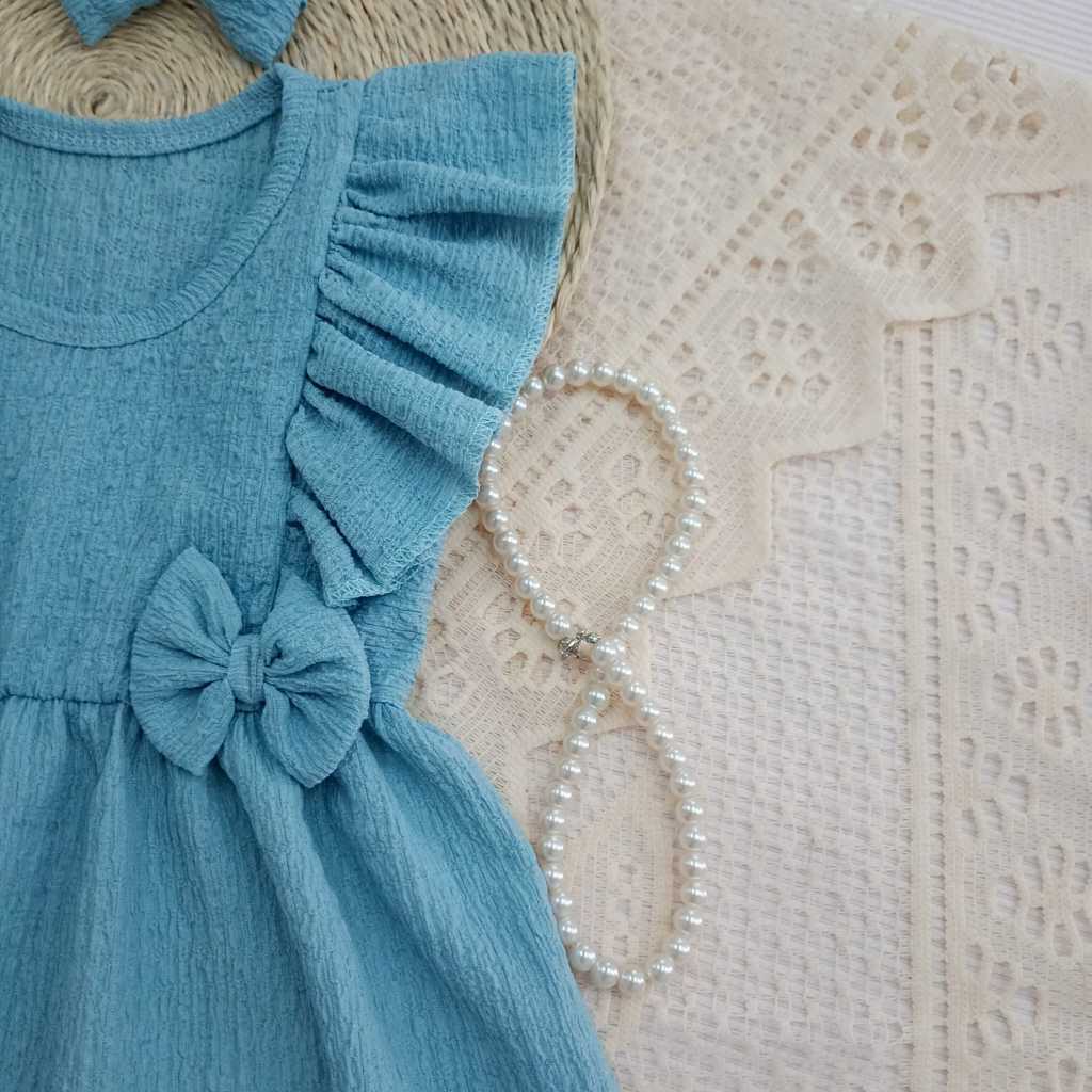 👶🎀 Vestido Azul Infantil Menina Bebê Criança com Laços + Laçinho de Cabelo | Confortável