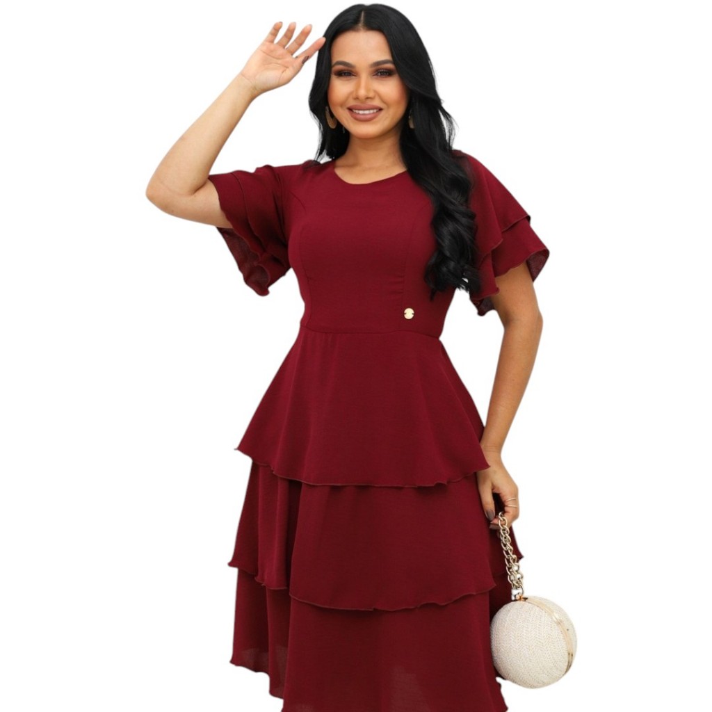 Vestido Babados Manga com Babados Decote Redondo Nas Costas Moda Evangelica Boho Chic REF:Eliana