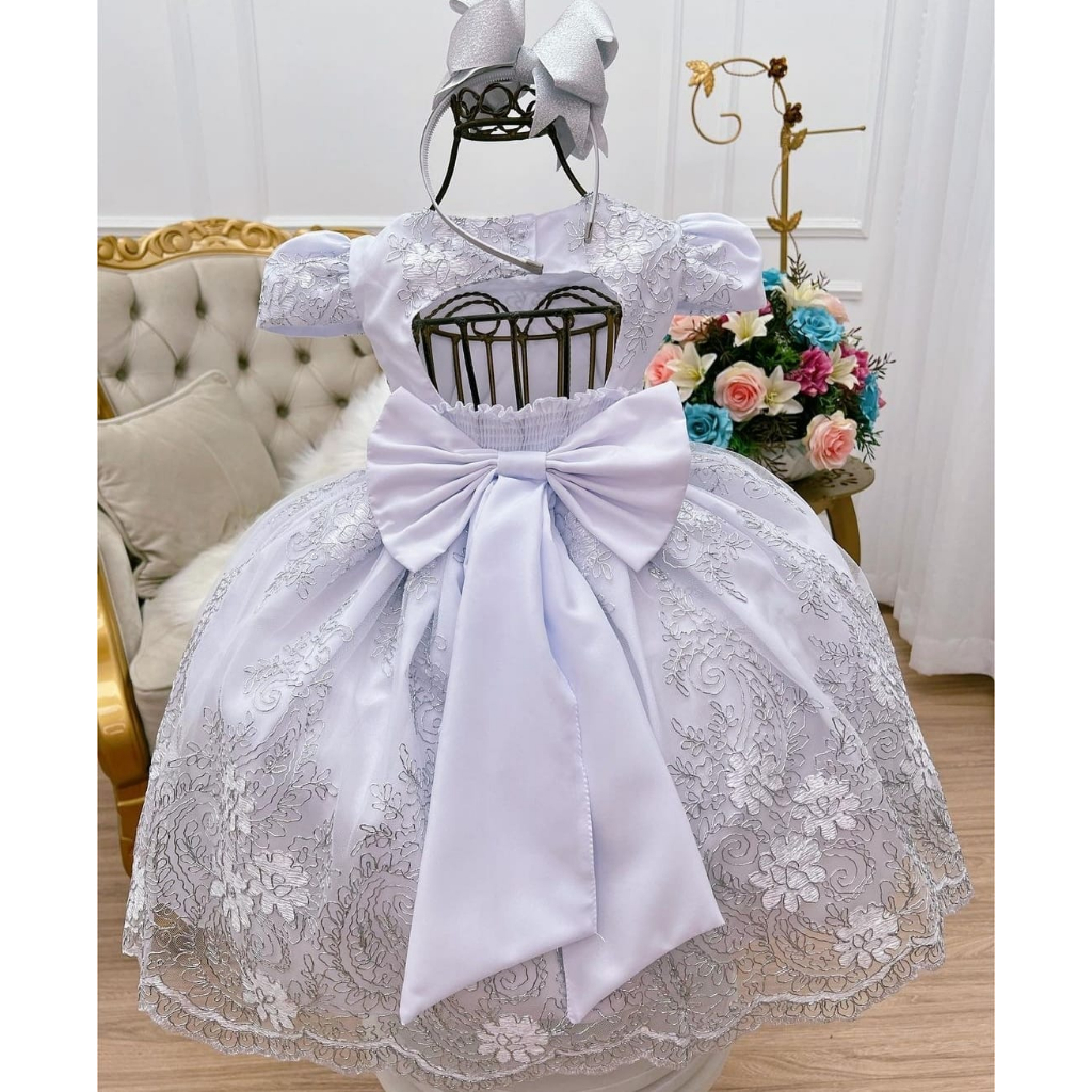 Vestido Bebê e Infantil Branco para Batizado Daminha Festas Luxo Vestido de Festa Infantil para Princesas Realeza