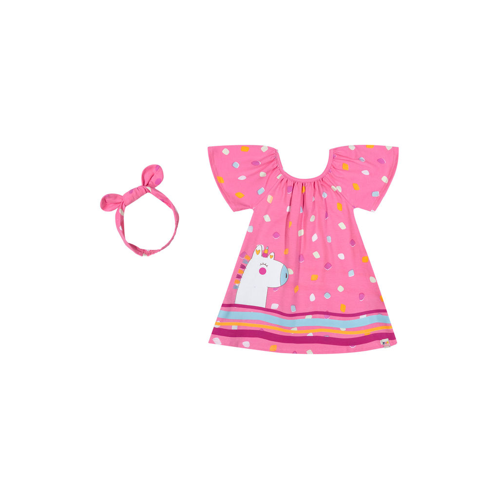 Vestido Bebê Menina Com Faixa Para Cabelo Elian Rosa