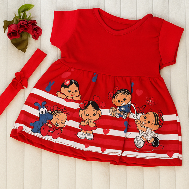 Vestido Bebê Mônica C/ Tiara Conforto e Fofura Tematico Foto Mesversario e Dia a Dia