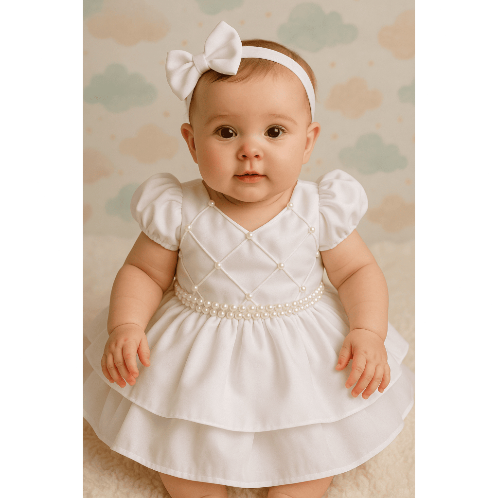 Vestido Bebê Pérola Princesa Rn a 2 Anos Batizado Festa Ensaio Fotográfico Apresentação Igreja Luxo