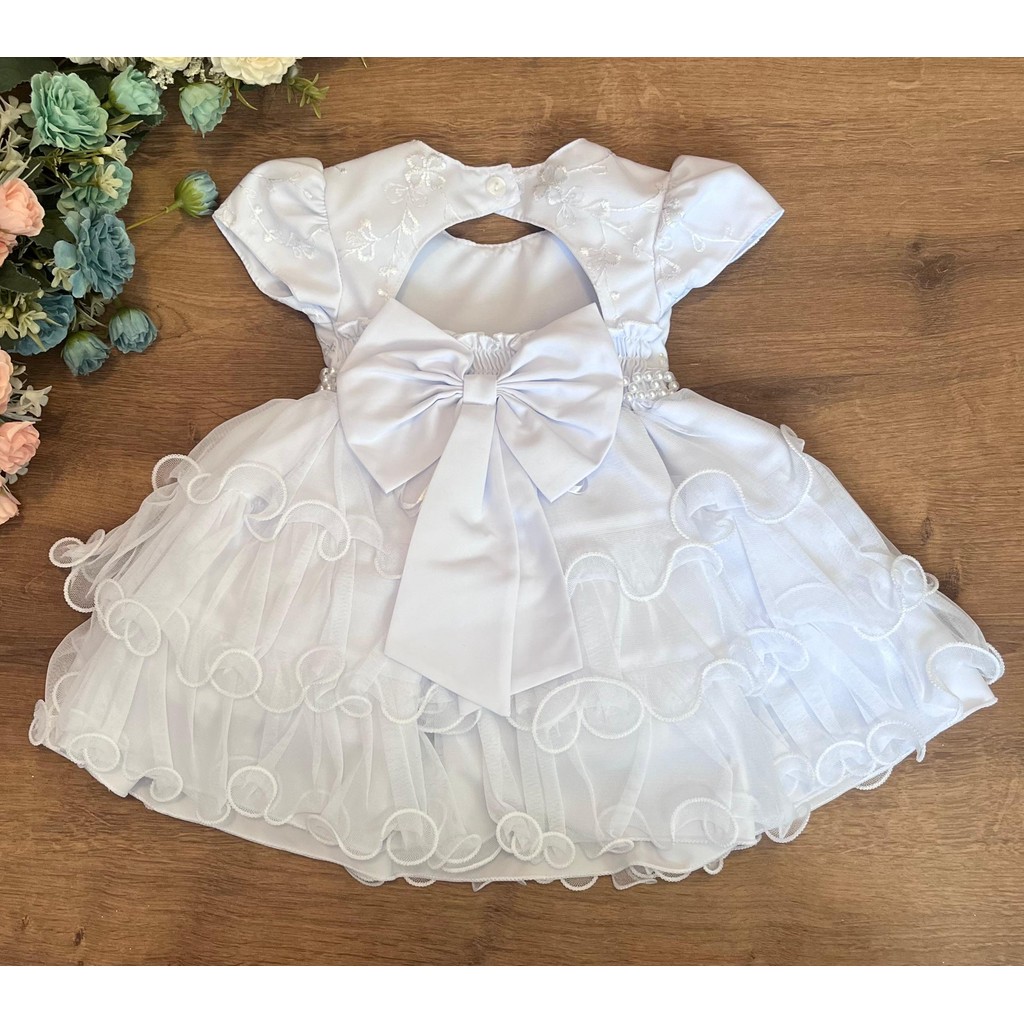Vestido branco festa infantil luxo daminha primeira comunhao bebe Rn a 3 anos