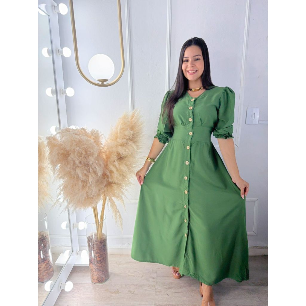 Vestido Chamise Feminino Longo Manga Curta Liso