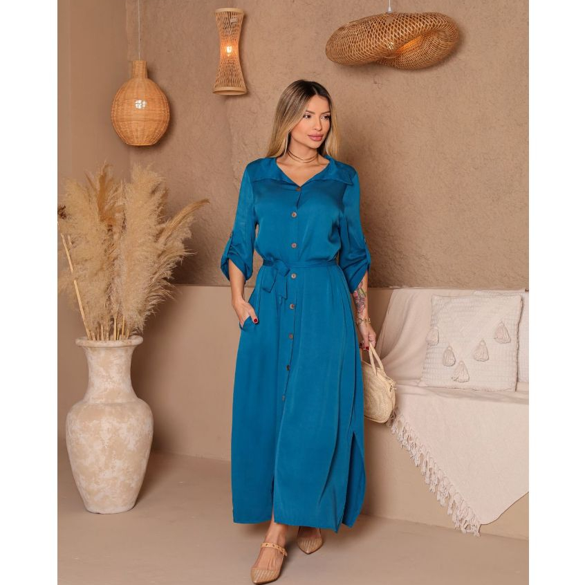 Elegância e versatilidade em cada detalhe! Apresentamos nosso vestido chemise confeccionado em viscose sarjada, um tecido leve, fluido e extremamente confortável. Com design moderno e feminino, ele conta com botões frontais, gola clássica e mangas que podem ser usadas longas ou 3/4, conforme a ocasião. O destaque fica por conta da abertura lateral, que proporciona movimento e um toque sensual na medida certa. Ideal para quem busca praticidade sem abrir mão do estilo. Disponível nos tamanhos M, G e GG, EG em cores lisas que combinam com tudo — uma peça coringa para usar do dia a dia ao happy hour.