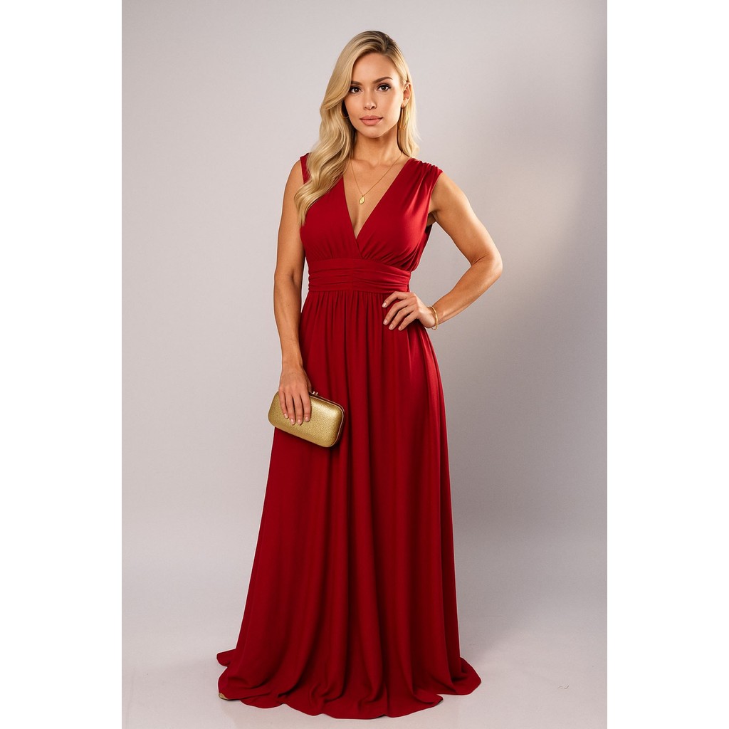 Vestido Charlotte Longo Helanca Festa Madrinha Decote Profundo Faixa Drapeada Saia Fluida
