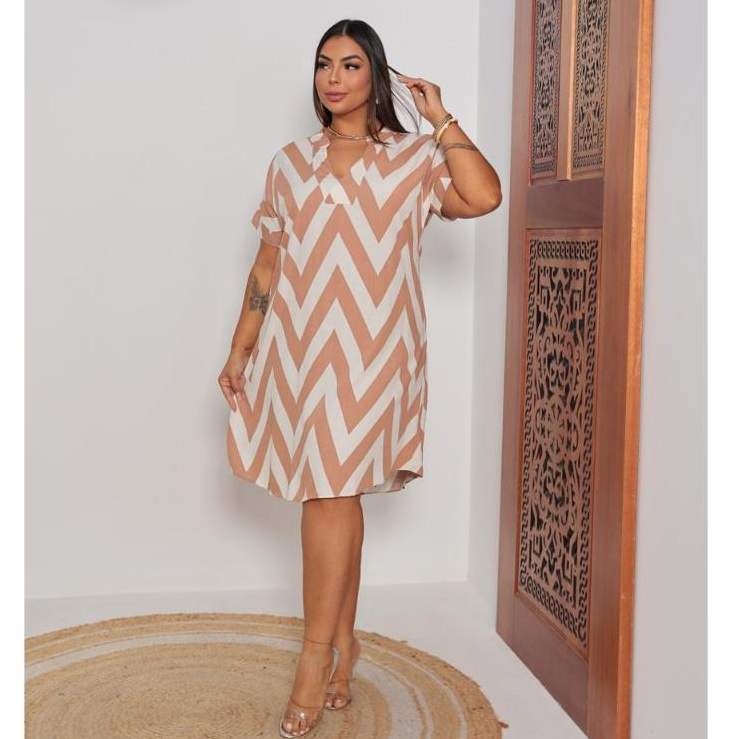 Vestido Chemise Feminina Plus Size Estampado