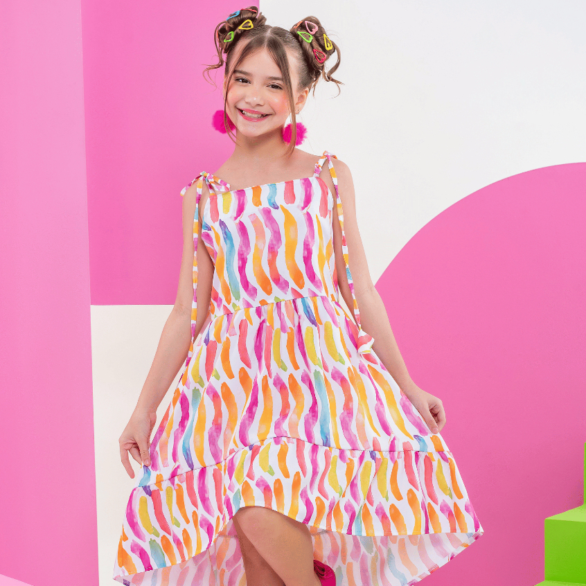Vestido Colorido Midi Rodado Babado Soltinho Juvenil Menina Blogueirinha Criança Festa Moda Alça