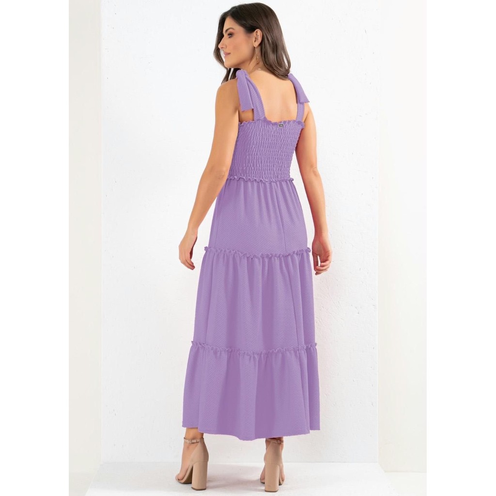 Vestido Com Babados E Alças Para Amarrar Roxo Quintess
