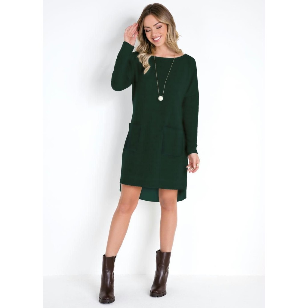 Vestido Com Bolsos Frontais Verde Quintess