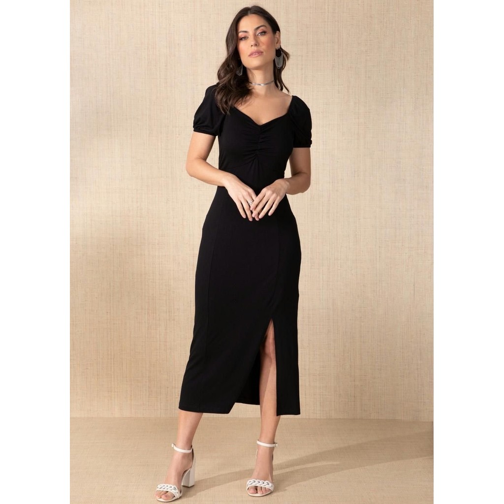 Vestido Com Fenda Na Barra Preto Quintess