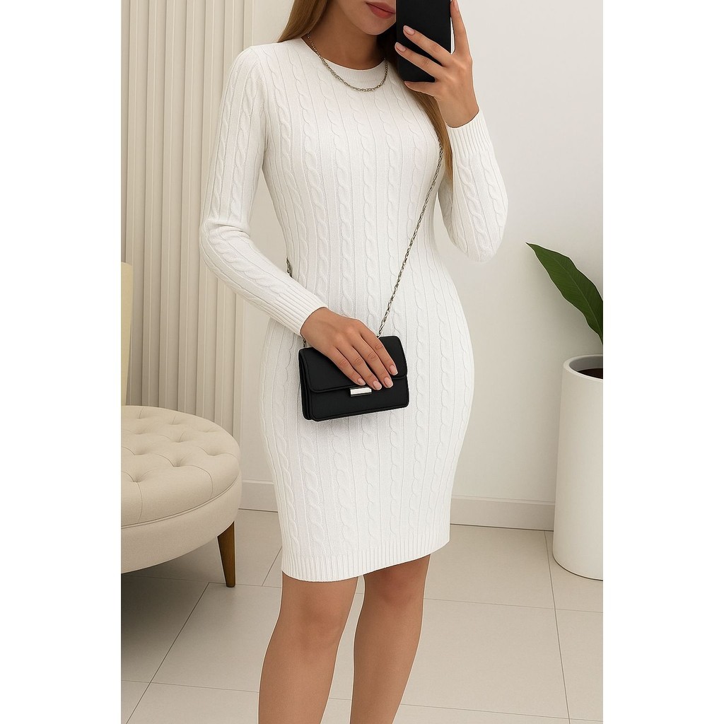 Vestido com Tranças Manga Longa Tricô Modal Inverno