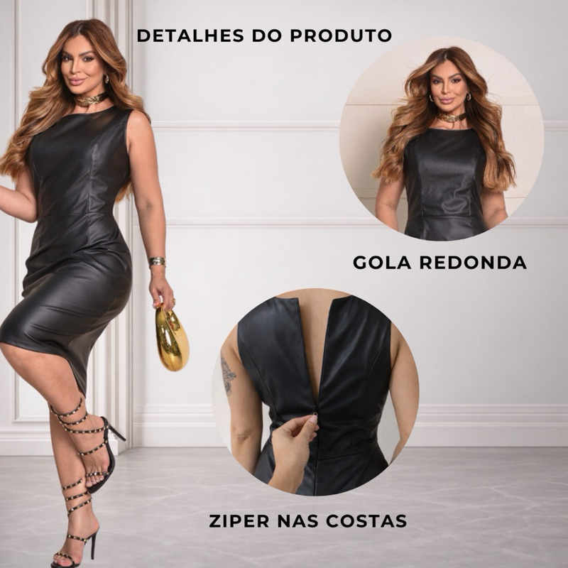 O vestido em couro fake é a escolha perfeita para quem busca um look moderno, elegante e cheio de personalidade. Com modelagem ajustada que valoriza as curvas do corpo, ele traz um visual sofisticado ideal para diversas ocasiões. Seu design sem mangas e com caimento estruturado proporciona um visual elegante e confortável. O tecido em couro sintético possui acabamento premium, garantindo estilo e presença em qualquer produção. Disponível nos tamanhos M(38-40), G(42) e GG(44) M - Comprimento 97cm | Busto 92cm | Cintura 74cm | Quadril 96cm G - Comprimento 98cm | Busto 98cm | Cintura 78cm | Quadril 98cm GG - Comprimento 99cm | Busto 102cm | Cintura 82cm | Quadril 100cm ✨ Destaques do produto: • Modelo: Vestido feminino midi • Material: Couro fake (couro sintético) • Modelagem ajustada que valoriza a silhueta • Design moderno e sofisticado • Sem mangas • Comprimento midi • Ideal para eventos, festas, jantares e ocasiões especiais 👗 Como usar: Combine com salto alto, sandálias ou botas para criar looks elegantes e estilosos.