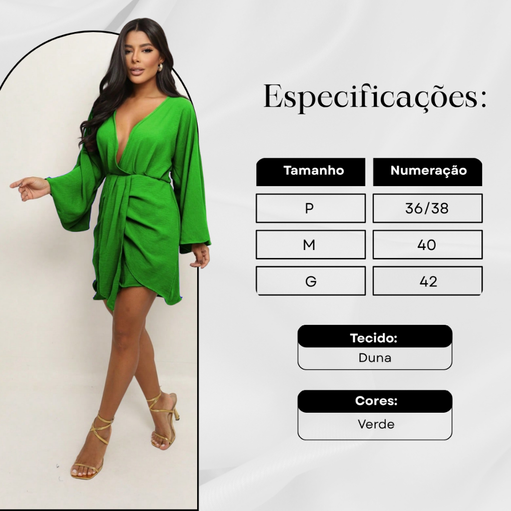 Vestido Curto Feminino Manga Longa Flare Decote V Soltinho Casual Elegante Inverno Moda Gringa