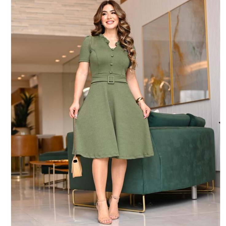 Olá seja bem-vindas a MISS LOÁ MODAS Seja bem-vindo(a) à nossa loja Miss Loa, um espaço dedicado a trazer para você as últimas tendências da moda com qualidade e estilo. Aqui, você encontra peças exclusivas que vão realçar sua beleza e confiança, seja para o seu dia a dia ou para graças especiais. Nossa missão é proporcionar uma experiência de compra única, oferecendo um atendimento personalizado e produtos de alta qualidade, que atendem às suas necessidades e desejos. Esse vestido é confeccionado em malha crepe, proporcionando um caimento suave e confortável. A peça apresenta mangas que dão um toque elegante e sofisticado, com um acabamento que mistura o clássico e o moderno. O design inclui detalhes refinados, como botões encapados, que adicionam um charme discreto e uma textura sutil à peça. Além disso, o vestido é complementado por um cinto com faixa, que marca a cintura de forma delicada, ajustando-se ao corpo e conferindo um visual mais estruturado e feminino. Ideal para diversas graças, o vestido combina estilo e conforto com um toque. TABELA DE TAMANHOS [ M ] VESTE DO 40/42 Contorno do peito - 86 - 88 Circunferência da cintura - 66 - 68 [ G ] VESTE DO 42/44 Contorno do peito - 88 - 90 Circunferência da cintura - 74 - 76 [ GG ] VESTE DO 44/46 Contorno do peito - 92 - 94 Circunferência da cintura - 76 - 78 A modelo está vestida com o [ M ] altura da modelo 1,64 DÚVIDAS FREQUENTES: 1-Qual o tecido? Crepe de malha, extremamente confortável. 2-A peça e fiel ao anúncio? Sim, o produto e idêntico ás fotos e descrição. 3A forma e pequena? As medidas são padrão, Mais temos modelos que podem sofrer variações de 1 a 2 cm. 4-Qual o prazo da entrega? O envio e feito até 24 horas úteis após a confirmação do pagamento. Antes de finalizar a compra, Consulte o guia de tamanhos no anúncio para escolher o tamanho ideal. Verifique seu endereço de entrega, pois não será possivel altera-lo após a confirmação da compra. Utilize o campo de perguntas para esclarecer quaisquer duvidas antes de realizar o pedido.