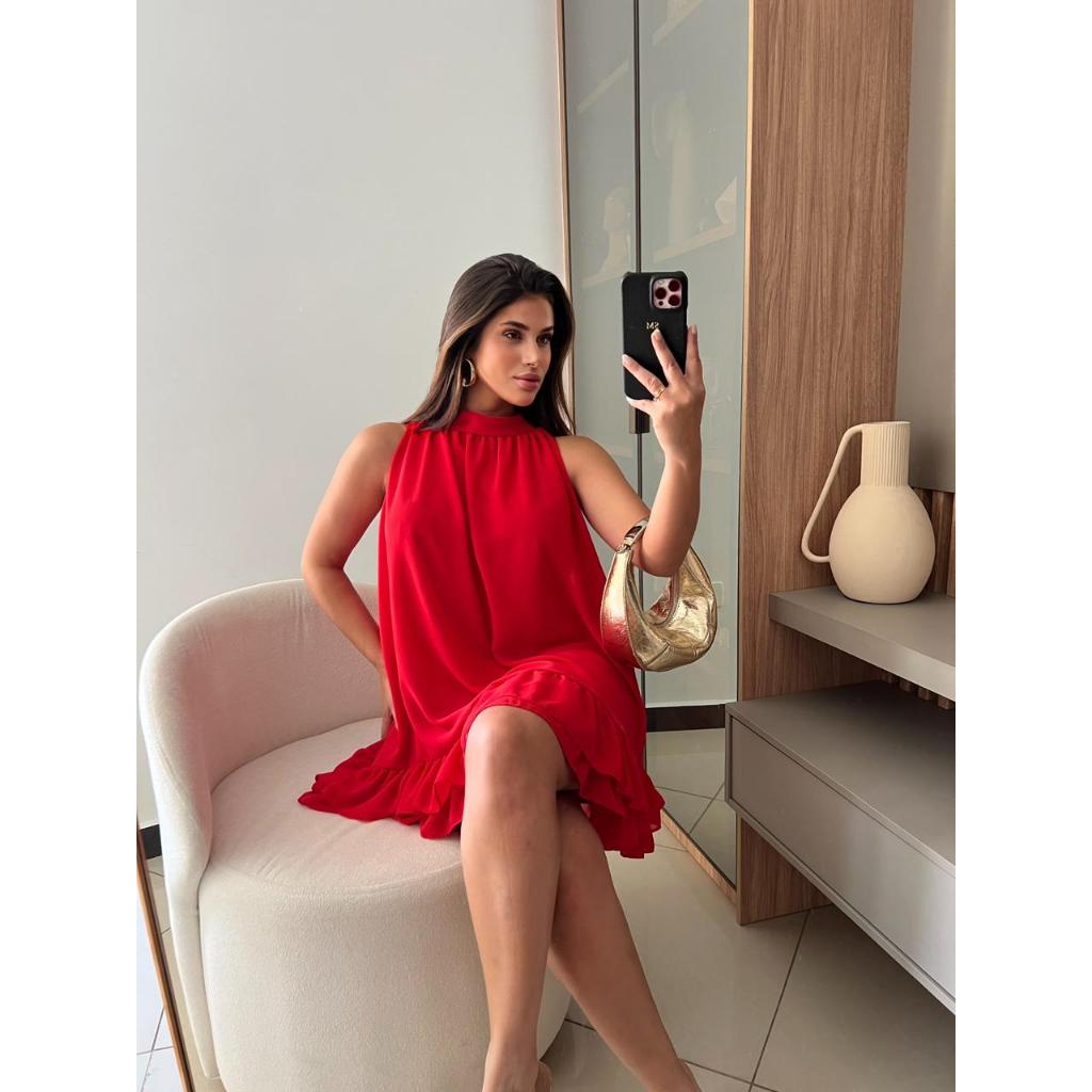 >.>.>SEJAM BEM VINDOS A NOSSA LOJA<.<.< Vestido curto confeccionado em tecido chiffon, leve e fluido, ideal para quem busca elegância e conforto. Possui gola alta, que traz um toque sofisticado ao look, e modelagem sem mangas, perfeita para dias mais quentes. O modelo não possui bojo, garantindo um caimento natural e confortável. A bainha com babado adiciona charme e movimento à peça, deixando o visual delicado e feminino. 💖 Detalhes do Produto: -Comprimento: Curto -Tecido: Chiffon -Gola: Alta -Mangas: Sem mangas -Bojo: Não possui -Bainha: Com babado -Estilo: Casual / Elegante Perfeito para ocasiões especiais, festas, passeios ou eventos diurnos e noturnos. Combine com sandálias, salto ou acessórios para um look ainda mais encantador! GARANTA JÁ A SUA PEÇA,BOAS COMPRAS E VOLTE SEMPRE......