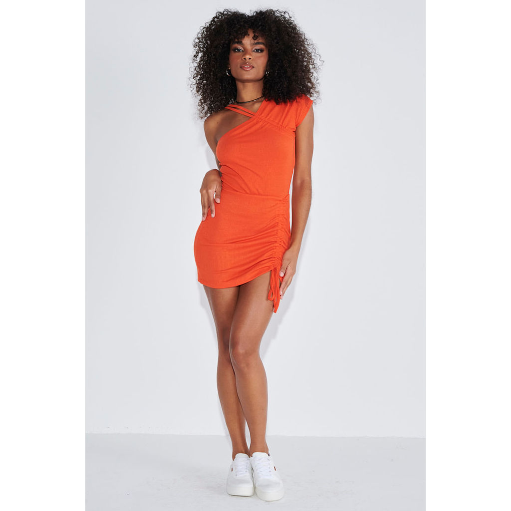 Vestido Curto Malha Canelado Planet Girls Laranja Médio