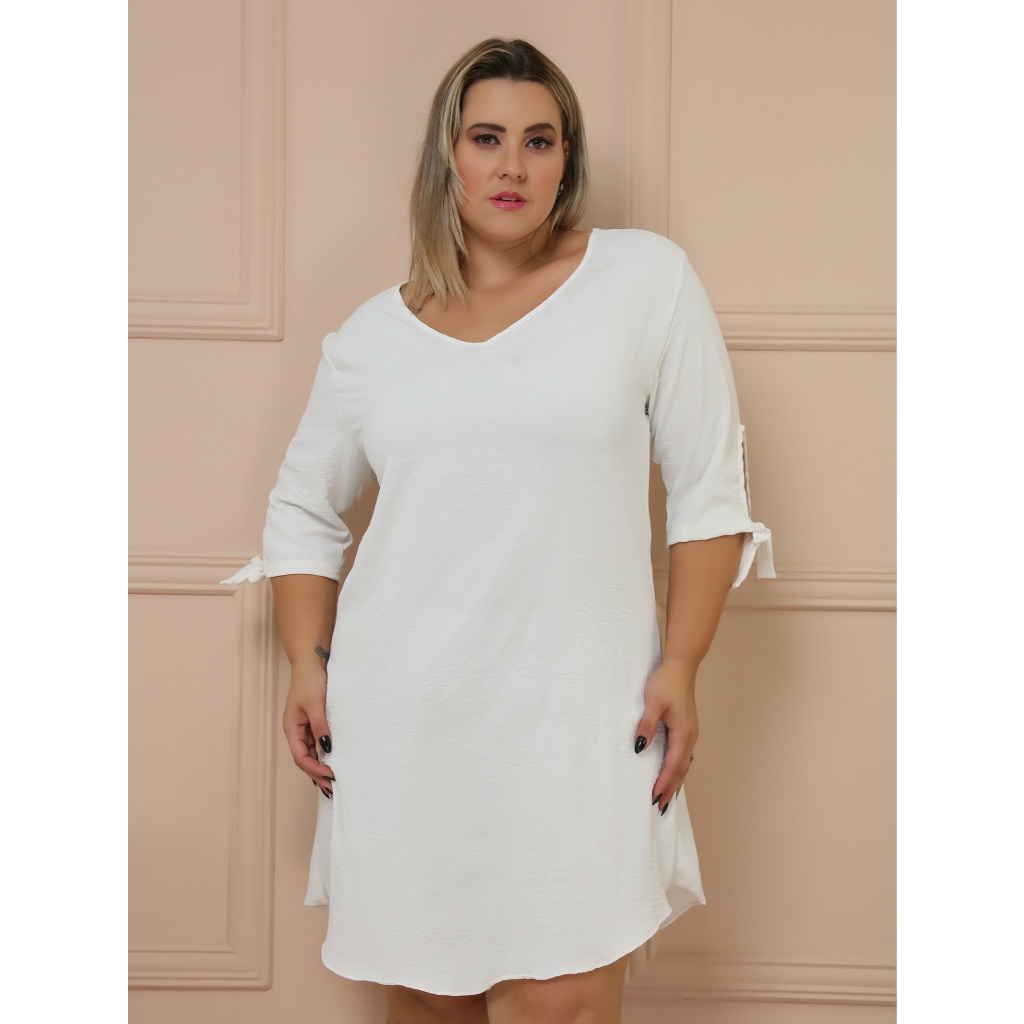 Vestido Curto Plus Size Manga Longa Gola V Elastex 48 Ao 54/COD:V46