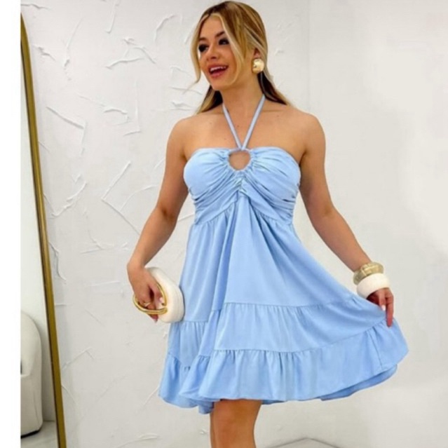 Vestido Curto Raiane Multiformes Tendência Vestido Raiane possui duas formas de amarração, tanto no pescoço como na frente, super elegante e estiloso, muito fresquinho para o verão, tecido leve e confortável. possui forro e bojo, caimento com babado. Elegância e conforto se resume nesse vestido. TAMANHO: único veste do 36/42 TECIDO: Viscolinho Envio imediato, dúvidas no chama no chat 💬