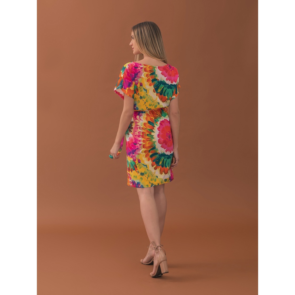 Vestido curto Soltinho manga curta colorido vestido estampada poliester com cinto