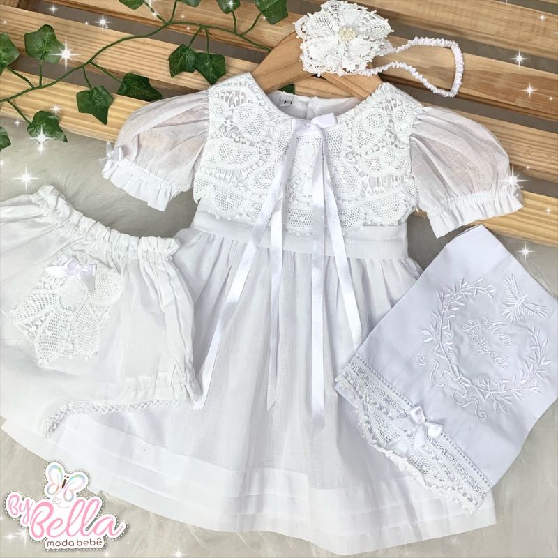 VESTIDO DE BATIZADO BORDADO ISABEL BATISMO MENINA RENDA RENASCENÇA