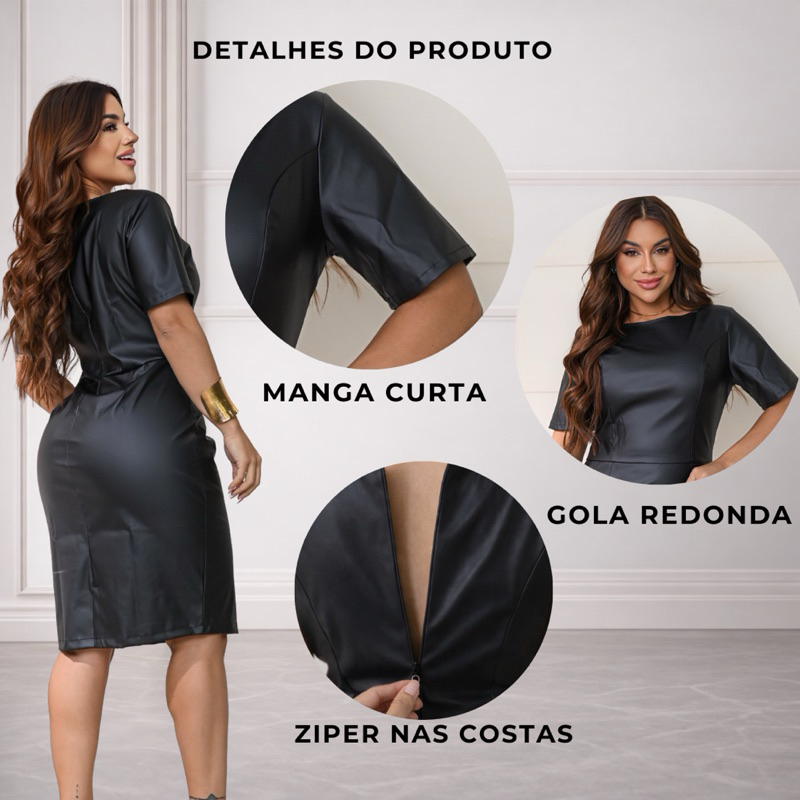 Tecido: Couro Sintético Ecológico Composição: 100% Poliéster Disponível nos tamanhos 👇🏻👇🏻👇🏻 📍M (veste 38-40) Busto 92cm | Cintura 76cm | Quadril 100cm | comprimento 99cm | Manga 24cm 📍G (veste 42) Busto 100cm | Cintura 84cm | Quadril 102cm | comprimento 100cm | Manga 25cm 📍GG (Veste 44) Busto 102cm | Cintura 88cm | Quadril 108cm | comprimento 103cm | Manga 26cm