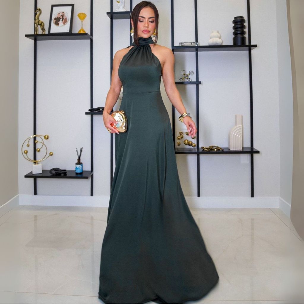 Vestido de Festa Anelise Longo Trilobal Gala Baile Casamento Convidada Formatura