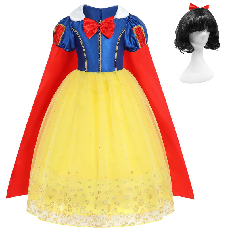 Vestido De Festa De Aniversário Para Meninas Verão Cosplay Branca De Neve Com Manto Princesa Doce Manga Curta