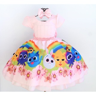 Vestido De Festa Infantil Aniversário Bolofofo Luxo Tiara Luxo