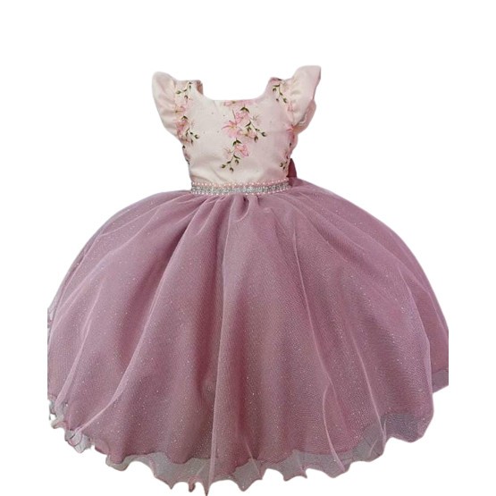 VESTIDO DE FESTA INFANTIL ROSE BUSTO FLORAL SAIA COM GLITTER D4187